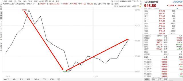 10月中旬,黄金价格冲上1004元/克的历史高点,朋友圈里到处都是"黄金还要涨"的消息。 很多人看着金价一路上涨,心里痒痒的,最后忍不住在高位冲了进去。结果市场给所有人上了一课:仅 仅13天时间,金价就暴跌到894元/克,足足跌了110元。 这种情况在投资市场上太常见了。问题的根源在于,很多人喜欢把所有的钱都押在一个地方。全仓单一 品种,涨的时候确实很爽,但跌的时候,煎熬程度也是成倍增加的。 我们换个角度看这个问题。假如你有10万元,不是全仓买黄金,而是采用资产配置的方式。比如黄金占 10%,也就是1万元,剩下的钱分散投资在债券、股票等其他资产上。 更要命的是,很多人在894元附近扛不住压力,选择割肉离场。现在金价又反弹到948元左右,那些早早卖出 的人只能在一旁后悔。这次黄金的过山车行情,让大家真切体会到了什么叫追涨杀跌。 Wind数据显示,10月15日,上海黄金交易所现货黄金盘中最高价达到960元/克,年初至今涨幅超过 60%。这种涨势确实让人心动,但问题是,大部分人并没有在这波行情里赚到钱。 很多投资者的操作是这样的:看新闻说黄金涨了,赶紧买;看专家说还要涨,加仓买;看朋友赚钱了, 跟着买。 结果就是在 ...