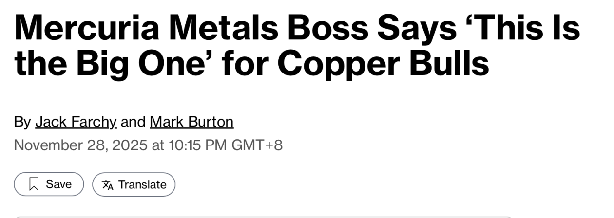 核心观点 - 摩科瑞能源集团金属业务负责人Kostas Bintas重申对铜价的看涨预估 认为涌入美国的铜贸易流将耗尽全球其他地区库存并推高价格 [1][2] 铜市场动态与价格驱动因素 - 由于未来可能加征关税的不确定性 贸易商近几周再次加大对美国的铜运输量 以期利用COMEX铜的大幅溢价获利 [1] - 今年初特朗普威胁加征关税引发全球铜矿大规模流入美国 导致美国铜价大幅飙升 其后特朗普豁免精炼铜关税但将在2026年下半年重新考虑 [1] - 利润丰厚的美国套利交易复苏 点燃了其他地区的供应短缺 预计铜价将很快进一步攀升 [1] - 铜价的剧烈波动鲜明地展现了特朗普的经济政策如何颠覆了金属市场传统的供求关系 [3] - 尽管需求疲软且供应过剩 但价格仍在上涨 这是一种特殊的市场动态 [3] 供应与库存状况 - 持续流入美国的金属流可能会加剧全球其他市场的阴极铜供应短缺 [1] - 一系列矿山停产导致供应吃紧 是全球铜价此前飙升至纪录新高的原因之一 [1][2] - 摩科瑞预计未来几个月美国铜进口量将回升 明年一季度进口量可能与今年第二季度创纪录的超过50万吨相近 [2] 价格表现与市场预期 - LME铜价已经接近纪录高点 未来预计只会继续上涨 [2] - 交易商的出价推高了以COMEX合约交割的铜溢价 有报道称一些交易商试图以高于LME价格每吨500美元以上的溢价购买明年的智利铜 [3] - 上周智利国家铜业公司向亚洲供应铜时 基准溢价超过每吨300美元 令亚洲客户感到震惊 [3] - Bintas去年3月曾预计铜价可能达到每吨12,000或13,000美元 该预估在当时引发关注 [2] 行业参与者行为 - 摩科瑞是今年套利交易最大的参与方之一 其在铝市建立的巨额头寸曾震撼LME铝市场并迫使LME调整交易规则 [1] - 竞争对手IXM和贡沃尔集团的高管近几个月也警告称 一系列矿山中断事件可能导致供应短缺 [2]
