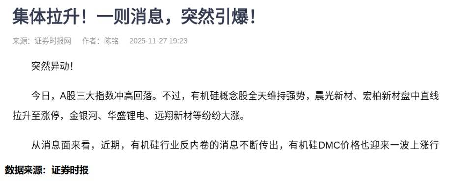 一、有机硅暴涨背后的冷思考 那天刷手机看到有机硅板块集体暴动的新闻,晨光新材、宏柏新材这些平时不起眼的票突然直线封板,就像饿了三天的流浪汉看见 自助餐似的。我盯着那张分时图看了半天——就是这张: 陶氏化学宣布涨价10%-20%的消息明晃晃挂在头条,国内DMC价格一个月涨了11.44%,连发改委都跳出来说要"反内卷"。表面看 逻辑完美无缺:供给收缩+需求增长=股价起飞。但您猜怎么着?我认识的两个老韭菜当天就冲进去接盘了,现在正蹲在厕所里哭 呢。 二、指数骗局与机构阳谋 这就像自助餐厅宣传"全场五折",结果发现帝王蟹早被抢光了。我花了十八年才搞明白:指数红彤彤的时候,机构正在玩"丢手 绢"的游戏。11月是基金年终考核月,业绩差的要拉净值,业绩好的要保排名。2025年这光景,守江山比打江山更重要。 三、牛市里的屠宰场 上周三只松鼠暴涨那天,我的量化系统突然警报大作。给大家看两张经典教学图: 第一个圈里股价假突破后直接活埋追涨的,第二个圈玩的是"老乡别走"的把戏。传统技术派看到跳空高开就高潮,结果裤衩都输没 了。再看这张: 同样的市场环境,这票调整完居然创新高了。为什么?答案藏在这张橙色柱状图里: 没有机构库存的反弹 ...