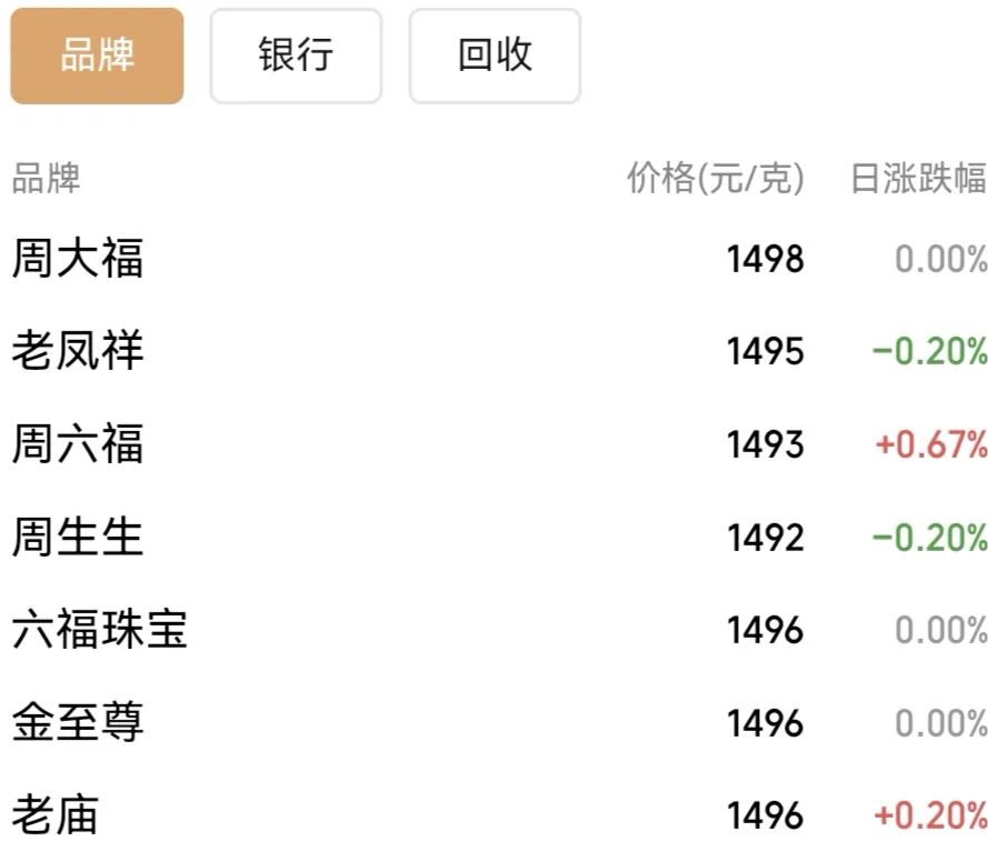 金价大涨!多品牌金饰克价逼近1500元