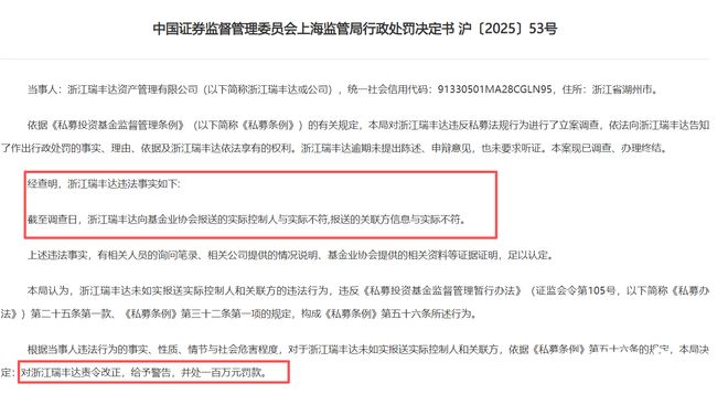 私募史上最重罚单,瑞丰达及相关责任方共被罚超4100万元