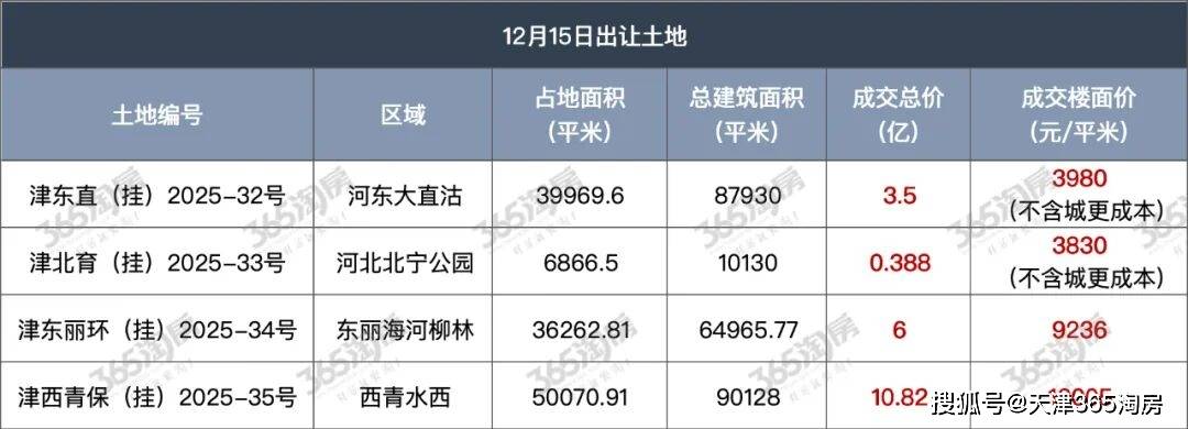 天津年末土地市场集中供应与成交概况 - 12月15日天津土地市场“压轴喷发” 单日成功出让4宗住宅用地 总成交额约20亿元[1] - 2025年1月至11月期间 天津全市累计出让住宅用地56宗 而仅12月单月就计划出让22宗 呈现年末“大冲刺”态势[2] - 除12月15日已成交的4宗地块外 从12月17日至31日 仍有18宗住宅用地待出让[2] 12月15日成交地块详情 - **河东大直沽地块 (津东直(挂)2025-32号)**: 由天津东昇城市更新产业运营有限公司竞得 成交总价3.5亿元 成交楼面价3980元/平米(不含城市更新成本) 土地面积39969.6平米 总建筑面积87930平米 容积率2.2[2][4] - **河北北宁公园地块 (津北育(挂)2025-33号)**: 成交总价0.388亿元 成交楼面价3830元/平米(不含城市更新成本) 土地面积6866.5平米 总建筑面积10130平米 容积率1.5[2][9][10] - **东丽海河柳林地块 (津东丽环(挂)2025-34号)**: 由天津丽烽置业有限公司竞得 成交总价6亿元 成交楼面价9236元/平米 土地面积36262.81平米 总建筑面积64965.77平米[2][17] - **西青水西地块 (津西青保(挂)2025-35号)**: 由天津市城泽房地产开发有限公司竞得 成交总价10.82亿元 成交楼面价12005元/平米 土地面积50070.91平米 总建筑面积90128平米 容积率1.8[2][13][14] 12月待出让地块计划 - 12月后续计划出让18宗宅地 主要摘牌日期集中在12月17日、22日、24日、26日、29日及31日[3] - 待出让地块分布于津南、西青、南开、武清、河北、河西、滨海等多个区域 其中津南咸水沽板块供应集中[3] - 部分地块起始信息示例: 津南(挂)2025-06号起始价5.63亿元 起始楼面价4095元/平米 津西青卫(挂)2025-37号起始价8.47亿元 起始楼面价11517元/平米[3] 重点成交地块分析与前景 - **河东大直沽地块**: 属于城市更新项目 周边多年无新盘供应 存在地缘改善需求 预计产品为小高层和洋房 总价门槛在250-300万元区间 周边20年房龄二手房成交均价约1.8-1.9万元/平米[6][8] - **河北北宁公园地块**: 体量微型 预计规划为纯洋房社区 约100户 主打中小户型地缘改善 从楼面价推测未来洋房售价可能在2.5-2.8万元/平米[12] - **西青水西地块**: 为板块时隔两年半后再供地 由天津城投摘得 成交楼面价12005元/平米 较板块此前H、C地块下降约15-20% 预计规划小高层和洋房 总价门槛约250万元 将弥补板块低总价房源断档[16] - **东丽海河柳林地块**: 为板块内继中交海河玺后第二次出让宅地 地块临近地铁11号线雪莲南路站 南向享有一线海河河景 开发商计划引入大牌房企代建 2023年5月中交所获同板块地块最低楼面价为1.36万元/平米[20][21]