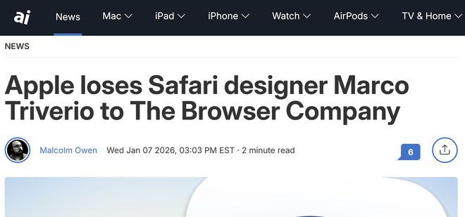 来源:环球网 【环球网科技综合报道】1月8日消息,据Applelnsider报道,The Browser Company首席执行官乔希·米勒 (Josh Miller)于近日在社交平台X及领英(LinkedIn)正式宣布,苹果Safari浏览器前首席设计师马尔 科·特里维里奥(Marco Triverio)已加盟该公司。 值得关注的是,The Browser Company此前已吸纳另一位苹果Safari前首席设计师查理·迪茨(Charlie Deets)。查理·迪茨于2024年4月从苹果离职,在苹果任职长达五年,同时拥有Meta首席产品设计师的 从业经历,备受用户熟知的"侧滑回复"交互手势便出自其手。此次马尔科·特里维里奥的加入,使得该 公司汇聚了覆盖"各个Safari发展阶段"的核心设计人才。查理·迪茨也通过领英表达了与老搭档再度合作 的期待,并在社交平台分享庆祝内容。 乔希·米勒在后续公开表态中明确了公司的发展战略,强调2025年将是发力关键期,致力于打造一支由 顶尖AI交互设计与产品研发人才组成的核心团队,将团队成员视为"兼具创造力与工匠精神的专业从业 者"。他表示,公司坚信浏览器将成为未来计算领域的 ...