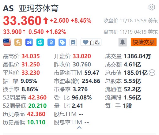 美股异动丨亚玛芬体育盘前续涨超1% Q3业绩超预期 上调2025财年指引