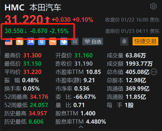 美股异动|本田盘前跌超2% 与通用燃料电池合资公司停产 相关车型项目停摆