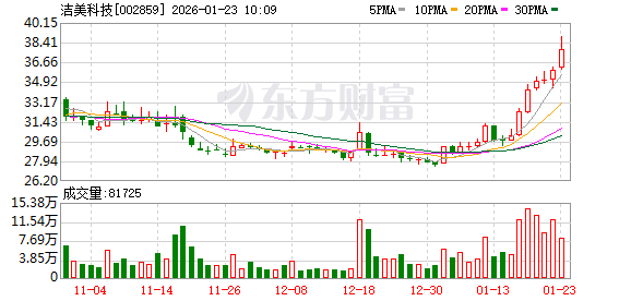 股价与市场表现 - 洁美科技股价于盘中创出历史新高,报37.65元,上涨4.58% [2] - 当日成交量为97.31万股,成交金额为3612.39万元,换手率为0.24% [2] - 公司最新A股总市值达162.25亿元,A股流通市值为152.71亿元 [2] 行业对比与市场情绪 - 公司所属电子行业整体跌幅为0.59%,行业内175只股票上涨,305只股票下跌 [2] - 行业内涨幅居前的个股包括江化微(10.00%)、金安国纪(9.18%)和必易微(6.70%) [2] - 公司最新两融余额为3.47亿元,其中融资余额为3.46亿元 [2] - 近10日融资余额增加2408.37万元,环比增长7.47% [2] 股东结构变化 - 截至1月20日,公司股东户数为12721户,较1月10日减少876户 [2] - 股东户数环比下降6.44% [2] 公司财务业绩 - 前三季度公司实现营业收入15.26亿元,同比增长13.74% [3] - 前三季度实现净利润1.76亿元,同比下降0.70% [3] - 基本每股收益为0.4100元,加权平均净资产收益率为5.83% [3]