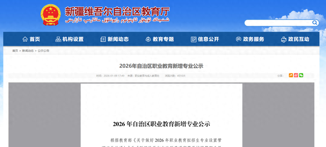 2025年12月,教育部发布《2025年职业教育专业目录增补清单》(以下简称为《清单》),共增设了57 个新专业,其中,中职专业3个、高职专科专业31个、职业本科专业23个。在新疆拟新增的274个专业 中,阿勒泰职业技术学院、克拉玛依职业技术学院、新疆天山职业技术大学、伊利职业技术学院开设了 《清单》中增补的新专业。 职本专业布点方面,新疆2026年拟新增的88个职本专业,分别由乌鲁木齐职业大学、新疆交通职业技术 大学、新疆农业职业技术大学、新疆天山职业技术大学以及新疆工程学院等5所高校开设。其中,2025 年经教育部发函批准升本的乌鲁木齐职业大学与新疆交通职业技术大学分别拟新增20与22个职本专业。 具体名单如下: 附件1 2026年自治区职业教育拟新增专业汇总表 (中职) | 序号 | 学校名称 | 专业大类 | 专业名称 | 专业代码 | 禁制 | | --- | --- | --- | --- | --- | --- | | I | 阿克苏地区库车中等职业技术学校 | 医药卫生大类 | 中医护理 | 720402 | 3年 | | 2 | 阿克苏地区库车中等职业技术学校 | 生物与化工大类 | 分析检 ...