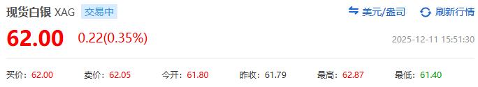 美联储降息利好兑现,贵金属市场应声冲高。 现货白银今日一举突破62美元/盎司,再度刷新历史纪录;现货黄金盘中触及4240美元/盎司高位,随后 有所回落。 截至发稿,现货白银报62美元/盎司,涨幅0.35%。现货黄金跌0.27%,报4217.2美元/盎司。 此外,加拿大皇家银行认为未来两年黄金仍有上涨空间,指出央行购金和投资需求从根本上强化了黄金 作为"非主权资产"的价值,最新预期2026年平均金价为4600美元/盎司,到2026年年末金价将达到4800 美元/盎司,2027年平均金价为5100美元/盎司。 美联储如期降息 此次贵金属价格上涨的核心驱动力在于美联储降息。宽松的货币环境显著提升了贵金属的资产配置价 值,叠加市场避险情绪的持续推动,共同促成了黄金、白银价格走高。 当地时间12月10日,美联储宣布再次降息25个基点,将联邦基金利率目标区间下调25个基点到3.50%至 3.75%之间,这是美联储继今年以来的第三次降息。 美联储主席鲍威尔在随后的讲话中提到,当前政策利率已处于"中性利率"区间的上端(即接近既非刺激 也非抑制经济的水平),并暗示明年1月可能暂时保持利率不变。 中金公司指出,鉴于经济与就业仍面 ...