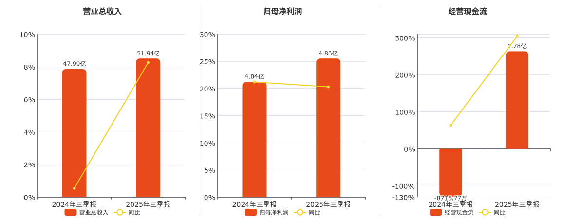 公司财务表现 - 公司前三季度实现营收51.94亿元,同比增长8.25% [1] - 公司前三季度归母净利润为4.86亿元,同比增长20.27% [1] - 公司前三季度扣非净利润为4.56亿元,同比增长19.05% [1] - 公司前三季度基本每股收益为1.07元 [1]