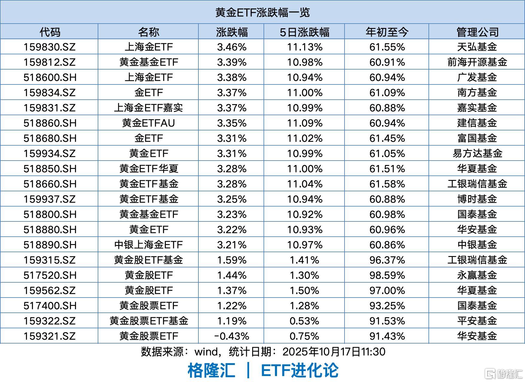 黄金市值站上30万亿美元大关,上海金ETF、黄金ETF、金ETF持续大涨