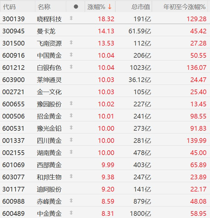 A股异动丨黄金概念股大面积涨停!白银有色7连板,四川黄金、中国黄金4连板
