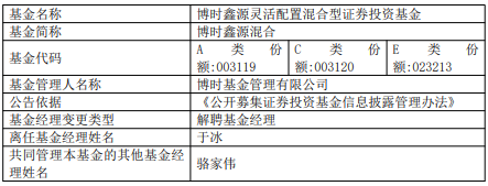 于冰离任博时基金旗下3只基金