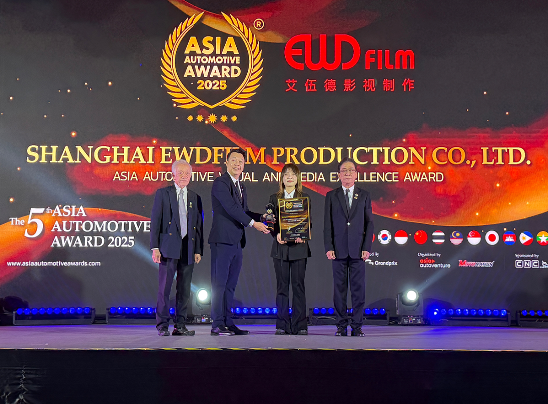 近日,第五届亚洲汽车大奖(The 5th Asia Automotive Award 2025)颁奖典礼在泰国曼谷举行。上海艾伍德影视制作有限公司(以下简称"艾伍德影视")荣 获"亚洲汽车视觉与媒体卓越奖(Asia Automotive Visual and Media Excellence Award)"。 亚洲汽车大奖由泰国工业部、泰国汽车协会(TAI)及曼谷国际车展主办方Grand Prix国际上市公司联合发起,是面向亚太汽车产业链的重要年度评选,重 点关注汽车品牌在视觉传播与产业协同层面的综合能力。颁奖现场,泰国工业部工业经济办公室主任苏帕吉·布恩西里(Supakit Boonsiri)表示,艾伍德影 视带来的不仅是完成度很高的视觉物料,更是一套成熟、可持续运转的影视工业化体系。 作为上汽集团、中国长安、吉利控股集团等多家头部车企的视觉内容合作伙伴,艾伍德影视长期提供涵盖视频与平面的系统化影像制作服务。依托高度标 准化、可持续优化的影视工业化流程,结合成熟的制片管理与执行体系,艾伍德影视将汽车的工程能力、产品细节与品质逻辑转译为跨文化、跨市场通用 的视觉语言。同时,艾伍德影视以工业化标准保障影像品质稳 ...