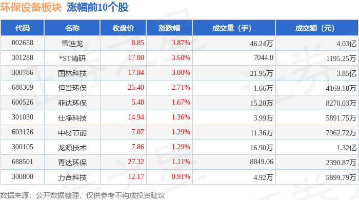 环保设备板块10月23日涨0.02%,雪迪龙领涨,主力资金净流出7001.57万元
