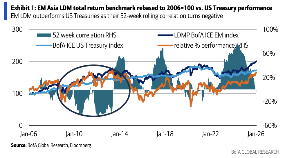 文章核心观点 - 全球金融市场正面临三个历史性的“脱钩”趋势,同时全球民粹主义政策水平已升至历史高位,两者共同推动投资逻辑发生结构性变化,传统依赖“美债—美元—黄金”框架的配置策略解释力下降 [1] 三大市场脱钩趋势 - **黄金与实际利率脱钩**:黄金价格已打破与实际利率长期以来的负相关规律 [1] - **美元与利差脱钩**:美元汇率走势显著弱于收益率利差所暗示的理论水平 [1] - **新兴市场本币债与美债脱钩**:两者总回报的相关性近期转负,出现明显分化 [1] - 新兴市场本币债与美债的52周滚动相关性在2026年初转为负值,为多年来罕见现象 [2] - 美银ICE新兴市场本币债券指数(美元计价总回报)较美债已跑赢28%,接近2013年基准重置后的历史高位 [2] 市场资金与价格行为背离 - 2026年迄今亚洲市场资金净流出达5亿美元 [4] - 投资者正倾向于在亚洲市场做空利率,尤其是在韩国、新加坡等宽松周期临近结束、估值被认为过高的市场 [4] - 价格与资金行为的明显错位揭示当前市场结构趋于拥挤,也预示着短期反转风险正在积聚 [4] 民粹主义的历史高位与长期影响 - 当前全球由民粹主义领导人执政的国家比例,已超过了过去120年中的任何时期,包括1930年代和1970年代等历史高点 [5] - 一国民粹主义势力崛起后的10至15年内,通常会出现经济增长放缓、通胀上升、债务占GDP比重提高、关税上升以及贸易开放度相对于非民粹主义国家下降的趋势 [7] - 民粹主义已不再是新兴市场的独有现象,其在发达经济体中亦日趋普遍 [7] 民粹主义背景下的资产配置逻辑 - 在民粹主义政策覆盖率达到历史高位、黄金同步大幅上涨的背景下,对新兴市场资产的筛选应更注重“政策可信度与相对基本面”的差异化分析,而非简单依赖宏观系统性贝塔 [1] - 评估新兴市场资产更应关注“政策的相对质量与经济的相对表现”,而不应将其视为同质化的高风险资产类别进行笼统配置 [7] - 过去两年间,多数新兴市场货币与黄金价格呈现出显著正相关性(除印尼盾等个别特例),在金价上行周期中,这些货币往往同步走强 [7] - 在政策不确定性系统性上升的环境中,黄金及其关联资产正被市场赋予双重角色:既是重要的价值储藏载体,也是衡量宏观情绪与信用风险的关键指标 [7]