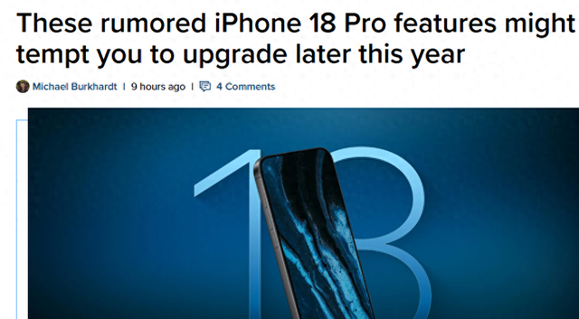 产品规划与发布节奏 - 距离iPhone 17 Pro发布仅过去五个月,iPhone 18 Pro的相关传闻已陆续曝光 [1] - 该旗舰机型有望成为今年值得期待的高端机型 [1] - 公司已准备测试iPhone 18量产事宜 [4] 产品设计与外观 - 得益于钛金属机身,有望新增棕色、紫色、酒红色三款配色,但传闻仍不会推出黑色版本 [4] - 沿用三年的灵动岛将首次缩小,借助Face ID组件屏下迁移技术实现,屏占比进一步优化 [4] 核心硬件配置 - 将首发台积电2nm工艺A20 Pro芯片,性能与能效大幅提升 [4] - 还可能搭配全新N2网络芯片,以提升多任务与网络体验 [4] - 全系列将搭载自研C2调制解调器,支持毫米波5G与卫星数据连接,能效提升有助于延长续航 [4] - iPhone 18 Pro Max电池容量预计增至5200mAh [4] 影像系统升级 - 两款Pro机型有望升级更大光圈长焦镜头 [4] - Pro Max版本或将搭载可变光圈主摄,以提升景深控制与拍摄灵活性 [4] 定价与市场策略 - 传闻该机型将维持前代售价,美版1099美元起,国行8999元起 [4] - 在硬件全面升级的背景下,维持起售价被认为极具竞争力 [4]