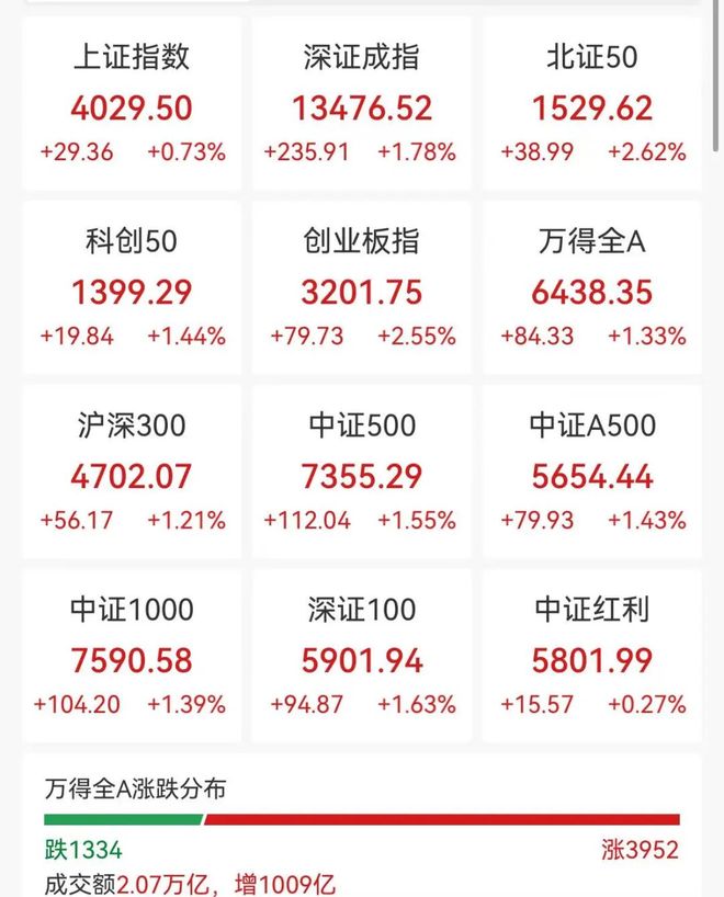 市场整体表现 - 市场全天震荡拉升,三大指数低开高走,沪指涨0.73%至4029.50点,刷新十年新高,深成指涨1.78%至13476.52点,创业板指涨2.55%至3201.75点 [1] - 沪深两市成交额达2.07万亿元 [1] - 万得全A指数上涨1.33%至6438.35点,市场涨跌分布为3952只股票上涨,1334只股票下跌 [2] 锂电池与储能行业 - 锂电池产业链全线大涨,宁德时代股价大涨超7%,概念股大面积涨停,包括维科技术(涨10.06%)、沧州明珠(涨10.04%)、天赐材料(涨10.00%)等 [2][4][7] - 尾盘储能概念持续走强,海博思创股价触及20%幅度涨停,再创历史新高 [4] - 消息面上,2025世界动力电池大会在四川宜宾举办,宁德时代董事长曾毓群透露其第五代磷酸铁锂电池产品已开始量产,在能量密度及循环寿命上实现新突破 [8] - 海博思创与宁德时代签订战略合作协议,承诺在2026年至2028年间向宁德时代采购电量累计不低于200GWh [8] 行业观点与展望 - 东吴证券观点认为,本轮电池板块行情主要源于储能、动力、AI数据中心等需求超预期,估值仍属合理区间,板块具备向上弹性 [8] - 国内储能产业高增长核心驱动力为能源结构转型,累计储能需求将超2000GWh,年均需求达百GWh级,行业已确立3至5年的持续成长周期 [8] - 信达证券指出储能驱动新一轮锂电周期,预计2025-2027年为全球能源转型驱动的储能周期,2026年储能需求增速有望达50% [9] - 东方证券认为科技成长内部切换,电力设备行业走出相对优势,风格仍在科技成长,前期高位科技行业调整后存在轮动可能性 [9] 其他活跃板块 - 大消费板块表现活跃,步步高等多股涨停,三元股份录得4连板 [2] - 福建板块持续走高,厦工股份、中国武夷等十余股涨停 [2] - 阿里云概念尾盘异动拉升,数据港直线涨停,润建股份、奥飞数据等冲高 [11] - 港股恒生科技指数午后拉升,涨幅扩大至1%,早盘一度跌超1%,阿里巴巴港股短线拉升,一度涨超5% [13] - 消息面上,阿里巴巴已秘密启动基于Qwen大模型的个人AI助手“千问”APP项目,全面对标ChatGPT,加入全球AI应用竞赛 [15]