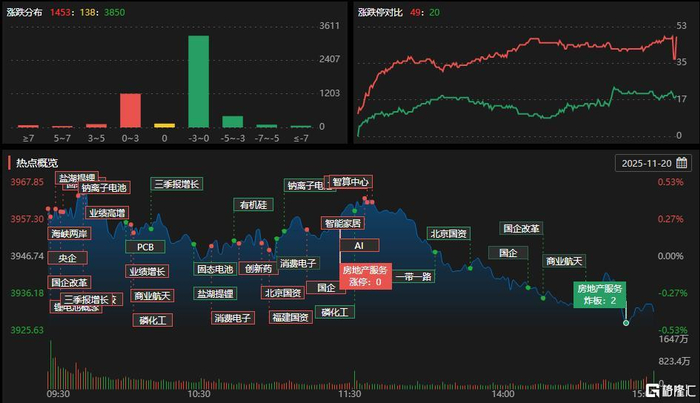 市场整体表现 - 主要股指普遍收跌,上证综指下跌0.4%,沪深300下跌0.51%,中证800下跌0.6%,中证500下跌0.85%,创业板指下跌1.12%,中证1000下跌0.63% [1] - 全市场成交额约1.72万亿元,较上一交易日减少0.02万亿元 [1] - 市场风格分化,金融和稳定类板块表现较好,而成长和周期类板块表现较差 [1] 英伟达财报表现 - 2026财年第三季度营收达570.1亿美元,超出市场预期的551.9亿美元 [3] - 数据中心业务营收为512亿美元,高于市场预期的493.4亿美元 [3] - 调整后每股收益为1.30美元,超过市场预期的1.25美元 [3] - 公司对第四季度营收指引约为650亿美元,显著高于分析师预期的616.6亿美元 [3] 半导体行业动态 - 荷兰政府宣布暂停针对安世半导体的行政令 [4] - 中方对荷方此举表示欢迎,但指出彻底解决全球半导体供应链问题的关键在于撤销行政令以及纠正剥夺闻泰科技对安世半导体控制权的错误裁决 [4] 全球宏观与市场观点 - 美元指数上涨0.59%,最高触及100.24,创下两周新高,同时美债利率上行,压制市场风险偏好 [5] - 11月以来全球股市出现结构性“再平衡”,资金从前期领涨的科技板块轮动至资源品、消费、医药等低位板块 [6] - 市场认为海外扰动为AI等景气成长主线提供了布局窗口,同时顺周期板块存在估值修复契机 [6] - 科技成长板块中,AI软件应用、军工、医药等行业被提及为明年景气预期向好且当前涨幅偏低的领域 [6] - 顺周期板块中,钢铁、化工、建材、新消费及服务消费、农业等行业被提及为明年具备景气或困境反转弹性的方向 [6]