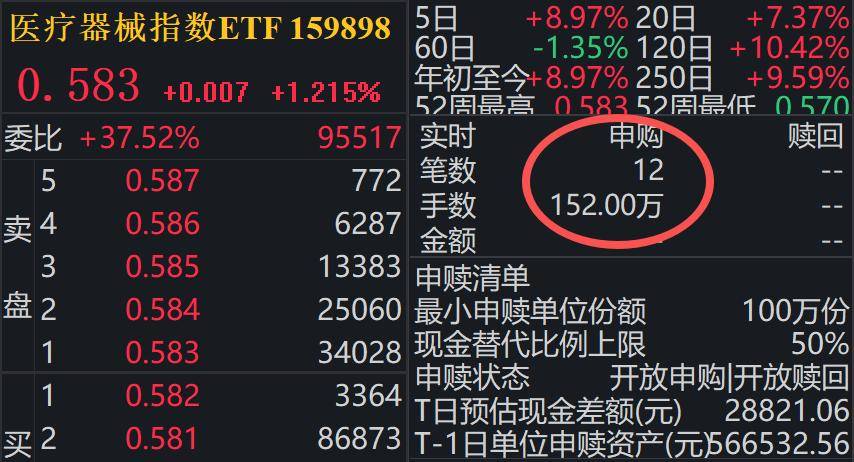 脑机接口+AI诊断火热!全市场规模最大的医疗器械ETF(159883)盘中获资金大幅申购超2.6亿
