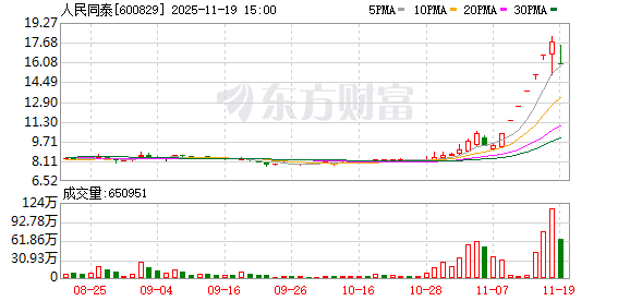人民同泰11月19日交易公开信息 人民同泰(600829)今日跌停,全天换手率11.23%,成交额10.60亿元,振幅9.59%。龙虎榜数据显示,营 业部席位合计净卖出1224.86万元。 上交所公开信息显示,当日该股因日跌幅偏离值达-10.16%上榜,营业部席位合计净卖出1224.86万元。 证券时报·数据宝统计显示,上榜的前五大买卖营业部合计成交1.98亿元,其中,买入成交额为9282.99 万元,卖出成交额为1.05亿元,合计净卖出1224.86万元。 具体来看,今日上榜营业部中,第一大买入营业部为国信证券股份有限公司浙江互联网分公司,买入金 额为3071.06万元,第一大卖出营业部为华泰证券股份有限公司厦门厦禾路证券营业部,卖出金额为 2342.67万元。 近半年该股累计上榜龙虎榜10次,上榜次日股价平均涨1.25%,上榜后5日平均涨7.62%。 资金流向方面,今日该股主力资金净流出8192.09万元,其中,特大单净流出4034.18万元,大单资金净 流出4157.91万元。近5日主力资金净流出7.22亿元。 10月21日公司发布的三季报数据显示,前三季度公司共实现营业收入78.46亿元,同比增长2. ...