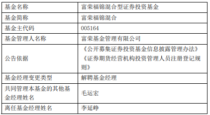 富荣福锦混合A/C成立于2018年3月16日,截至2025年11月20日,其今年来收益率为-1.50%、-1.58%,成 立来收益率为109.82%、106.20%,累计净值为2.0982元、2.0620元。 中国经济网北京11月21日讯 近日,富荣基金公告,李延峥离任富荣福锦混合,毛运宏管理。 | 基金名称 | 富荣福锦混合型证券投资基金 | | --- | --- | | 基金简称 | 富荣福锦混合 | | 基金主代码 | 005164 | | 基金管理人名称 | 富荣基金管理有限公司 | | 公告依据 | 《公开募集证券投资基金信息披露管理办法》 《证券期货经营机构投资管理人员注册登记规 | | | 则》 | | 基金经理变更类型 | 解聘基金经理 | | 共同管理本基金的其他基 | 毛运宏 | | 金经理姓名 | | | 离任基金经理姓名 | 李证峥 | 毛运宏2021年加入富荣基金管理有限公司,历任研究部研究员负责TMT、汽车、锂电等行业研究。 2025年5月29日担任基金经理。 ...