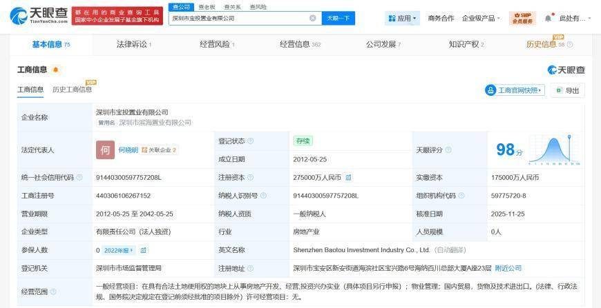 深圳市宝投置业公司增资至27.5亿 增幅约57%