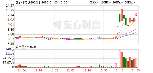 具体来看,今日上榜的营业部中,共有1家机构专用席位现身,即买一,买入金额1693.38万元,卖出金 额1024.27万元,合计净买入669.11万元。 流金科技(920021)今日上涨8.52%,全天换手率33.70%,成交额9.83亿元,振幅15.09%。龙虎榜数据 显示,机构净买入669.11万元,营业部席位合计净卖出775.35万元。 北交所公开信息显示,当日该股因日换手率达33.70%上榜,机构专用席位净买入669.11万元。 证券时报·数据宝统计显示,上榜的前五大买卖营业部合计成交1.80亿元,其中,买入成交额为8971.21 万元,卖出成交额为9077.44万元,合计净卖出106.23万元。 卖五 东方财富证券股份有限公司拉萨东环路第一证券营业 部 (文章来源:证券时报网) 1081.44 1298.43 近半年该股累计上榜龙虎榜9次,上榜次日股价平均涨2.45%,上榜后5日平均涨6.84%。(数据宝) 流金科技1月23日交易公开信息 | 买/ 卖 | 会员营业部名称 | 买入金额(万元) | 卖出金额(万元) | | --- | --- | --- | --- | | 买一 | 机构专用 | 1 ...