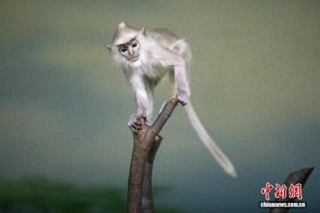 广东清远长隆森林王国展出缨冠灰叶猴幼崽