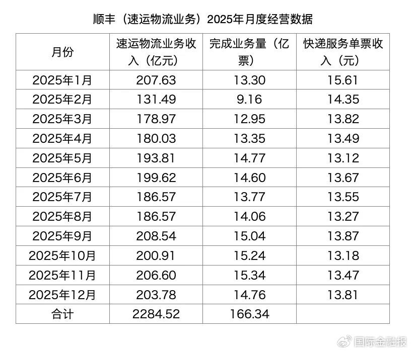 2025年A股快递公司经营数据总结 - 2025年12月,A股四大快递公司股价均收涨,顺丰控股涨2.37%,圆通速递涨2.75%,申通快递和韵达股份分别收涨1.02%、1.01% [1] - 2025年全年,顺丰控股速运物流业务收入达2284.52亿元,业务量166.34亿票,供应链及国际业务收入727.46亿元,两项业务合计营收首次突破3000亿元,达到3011.98亿元 [1][2] - 2025年全年,圆通速递在“通达系”中营收与业务量领先,快递服务业务收入683.18亿元,业务量311.44亿票,申通快递收入548.61亿元,业务量261.38亿票,韵达股份收入510.41亿元,业务量256.01亿票 [5][6] - 截至数据发布日收盘,圆通速递最新市值602亿元,大幅领先申通快递的212亿元和韵达股份的202亿元 [7] 顺丰控股2025年经营表现 - 2025年12月,顺丰速运物流业务营收203.78亿元,同比增长3.78%;业务量14.76亿票,同比增长9.33%;单票收入13.81元/票,同比下跌5.09% [1] - 2025年12月,顺丰供应链及国际业务营收69.61亿元,同比增长2.35% [1] - 2025年1-12月,顺丰速运物流业务单票收入呈波动趋势,从1月的15.61元/票降至12月的13.81元/票 [2] - 顺丰与极兔速递达成战略合作,双方互相认购新股,交易完成后顺丰将持有极兔10%股权,极兔将持有顺丰4.29%股权,极兔董事会主席承诺支持顺丰提名一名董事候选人加入极兔董事会 [4] - 顺丰在2025年1月加大股份回购力度,1月16日斥资5211.72万元回购134.13万股,1月19日斥资5234.3万元回购135.5万股 [4] “通达系”2025年经营表现对比 - 2025年12月,圆通速递快递产品收入64.96亿元,同比增长7.48%;业务量28.84亿票,同比增长9.04%;单票收入2.25元,同比下降1.43% [6] - 2025年12月,申通快递服务业务收入58.36亿元,同比增长28.23%;业务量25.01亿票,同比增长11.09%;单票收入2.33元,同比增长15.35% [6] - 2025年12月,韵达股份快递服务业务收入46.26亿元,同比下降1.49%;业务量21.48亿票,同比下降7.37%;单票收入2.15元,同比增长5.91% [6] - 2025年全年,圆通单票收入高于申通与韵达,申通单票收入略低于圆通但高于韵达,韵达单票收入在三家公司中垫底,反映了其更为激进的价格策略 [7] 行业趋势与挑战 - 电商平台对低价的持续偏好,使得快递企业仍需在价格与服务之间不断权衡 [7] - 行业成本端压力持续上升,人工、运力、场地等成本上涨,加上新能源车辆投入、自动化设备升级,均对现金流与利润率构成压力 [7] - 在同质化严重的电商件市场,如何通过时效、稳定性、增值服务实现差异化,是快递公司共同面对的课题 [7] - 监管趋严与绿色转型,如包装减量、碳排放管理、末端合规化等要求提高了运营复杂度,也需要持续投入 [7]