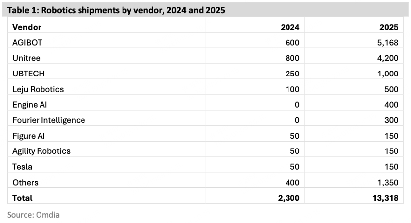 Omdia:人形机器人年出货量1.3万台,智元占比39%
