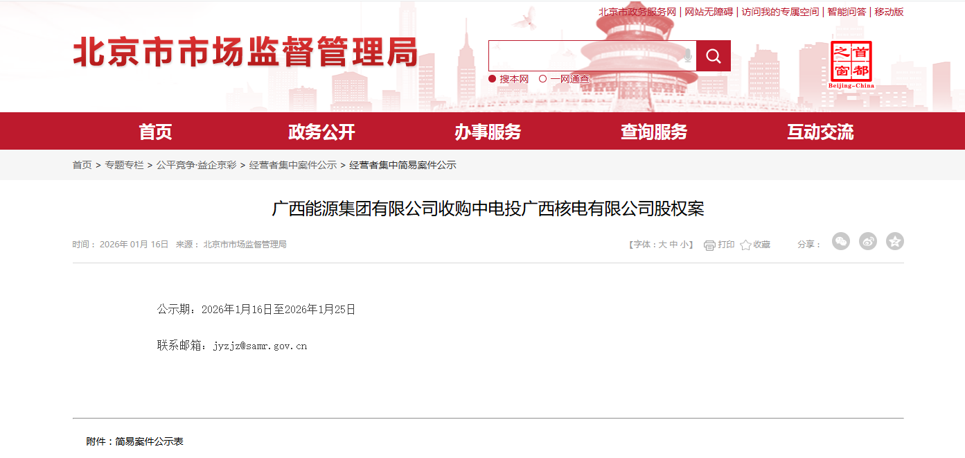 市场监管信息公示 - 相关市场监管事项的公示期为2026年1月16日至2026年1月25日 [2] - 公示期间的联系邮箱为 jyzjz@samr.gov.cn [2]