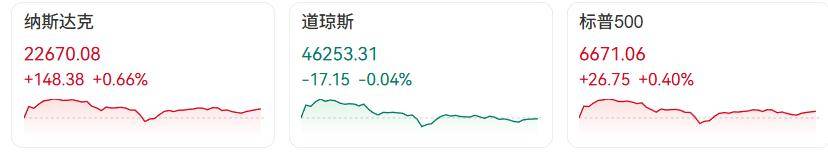 美股市场表现 - 美股主要指数涨跌互现,道指跌0.04%至46253.31点,纳指涨0.66%至22670.08点,标普500指数涨0.40%至6671.06点[2] - 明星科技股多数上涨,谷歌涨2.2%,甲骨文涨1.5%,特斯拉涨1.4%,Meta涨1.3%,苹果涨0.6%[2] - 纳斯达克中国金龙指数涨1.70%,新东方大涨10.5%,唯品会涨2.5%,阿里巴巴、京东、网易、百度涨幅均超1%[3] 银行股与财报 - 美国银行股价涨4.4%,三季度净利润激增23%至84.7亿美元,投行业务收入增长43%至20.5亿美元,远超分析师预期的16.5亿美元[5] - 摩根士丹利股价涨4.7%创历史新高,第三季度净营收182.2亿美元,同比增长18%,市场预期166.4亿美元,每股收益2.80美元,股本回报率达18%[5] 宏观经济与政策 - 美联储理事表示今年再降息两次的可能性合理,并指出劳动力市场已明显走弱[4] - 美联储褐皮书指出部分雇主因经济不确定性裁员,部分案例与人工智能领域投资增加有关,同时受移民政策影响,酒店、农业、建筑和制造业面临劳动力供应紧张[4] - 9月末中国社会融资规模存量同比增长8.7%至437.08万亿元,M1增速比年内低点提升7.1个百分点,M1-M2剪刀差收窄至-1.2%[10] - 中国9月CPI同比下降0.3%,PPI同比下降2.3%,核心CPI同比上涨1.0%,为近19个月以来涨幅首次回到1%[9] 行业与公司动态 - 苹果公司发布搭载M5芯片的新款MacBook Pro、iPad Pro和Vision Pro[2] - 中国发布《电动汽车充电设施服务能力"三年倍增"行动方案》,目标到2027年底在高速公路服务区新建改建4万个60千瓦以上充电枪[9] - 宁德时代与京东集团签署战略合作协议,双方将协同建立巧克力换电官方直销渠道,共同推广车电分离用车模式[15] - OpenAI与博通达成战略合作,共同推出总容量达10吉瓦(GW)的定制芯片[16] 大宗商品与债券市场 - 国际油价下跌,WTI原油近月合约跌0.73%至每桶58.27美元,布伦特原油近月合约跌0.77%至每桶61.91美元[5] - 黄金价格刷新纪录,COMEX黄金期货涨1.06%至每盎司4182.50美元,首次突破4200美元关口[5] - 美国10年期国债收益率升至4.044%,上涨2.2个基点,2年期国债收益率升至3.506%,上涨2.7个基点[5] 中国资本市场 - 9月份中国电商物流指数环比继续上升,刷新年内新高[11] - 龙虎榜数据显示机构净买入前三的股票为金盘科技(日涨跌幅20.00%)、向日葵(19.97%)、兴森科技(10.02%)[17] - 三花智控公告澄清关于公司获得机器人大额订单的传言不属实[18]