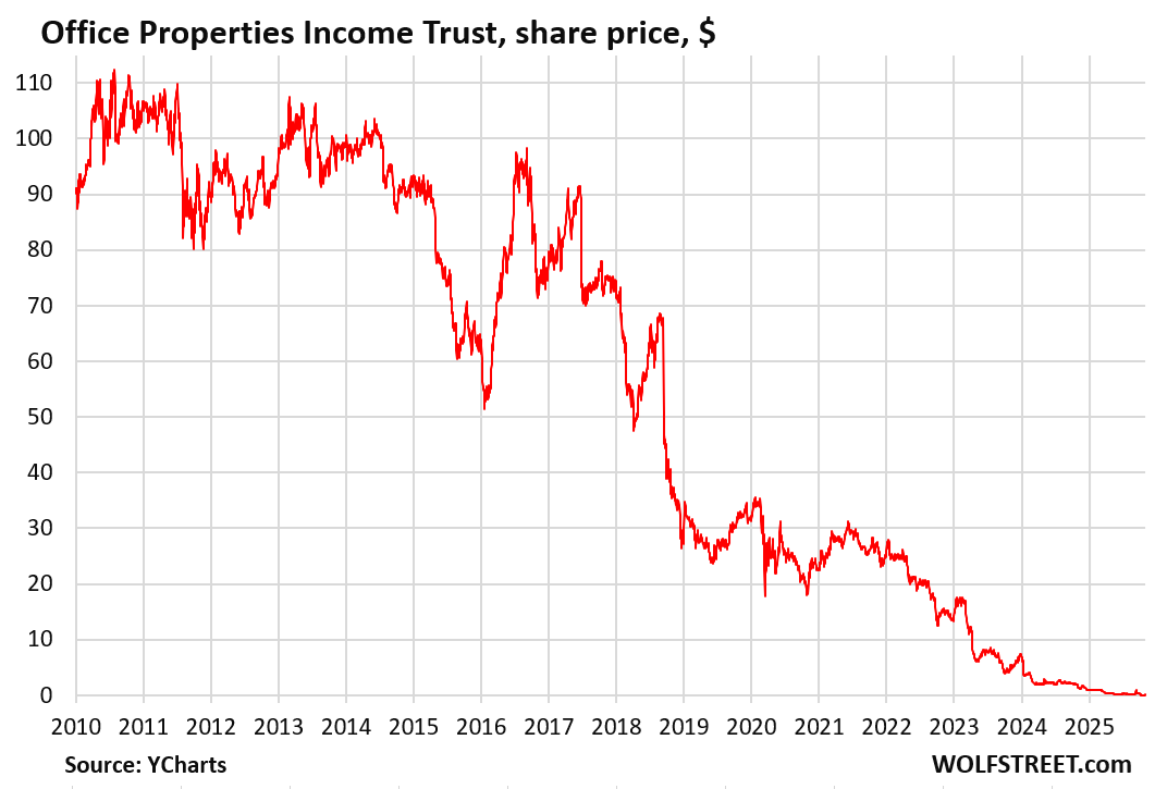 Who Takes the Losses on Office CRE? Here’s an Example: the Bankruptcy of Office Properties Income Trust