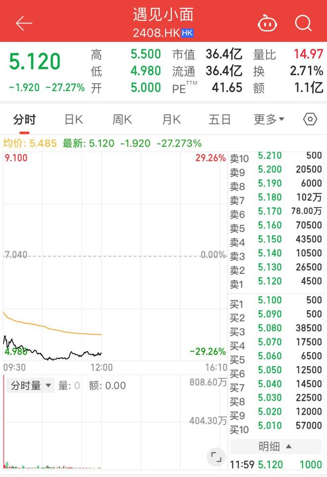 “新式面馆第一股”上市遇冷,遇见小面破发,此前超额认购超400倍