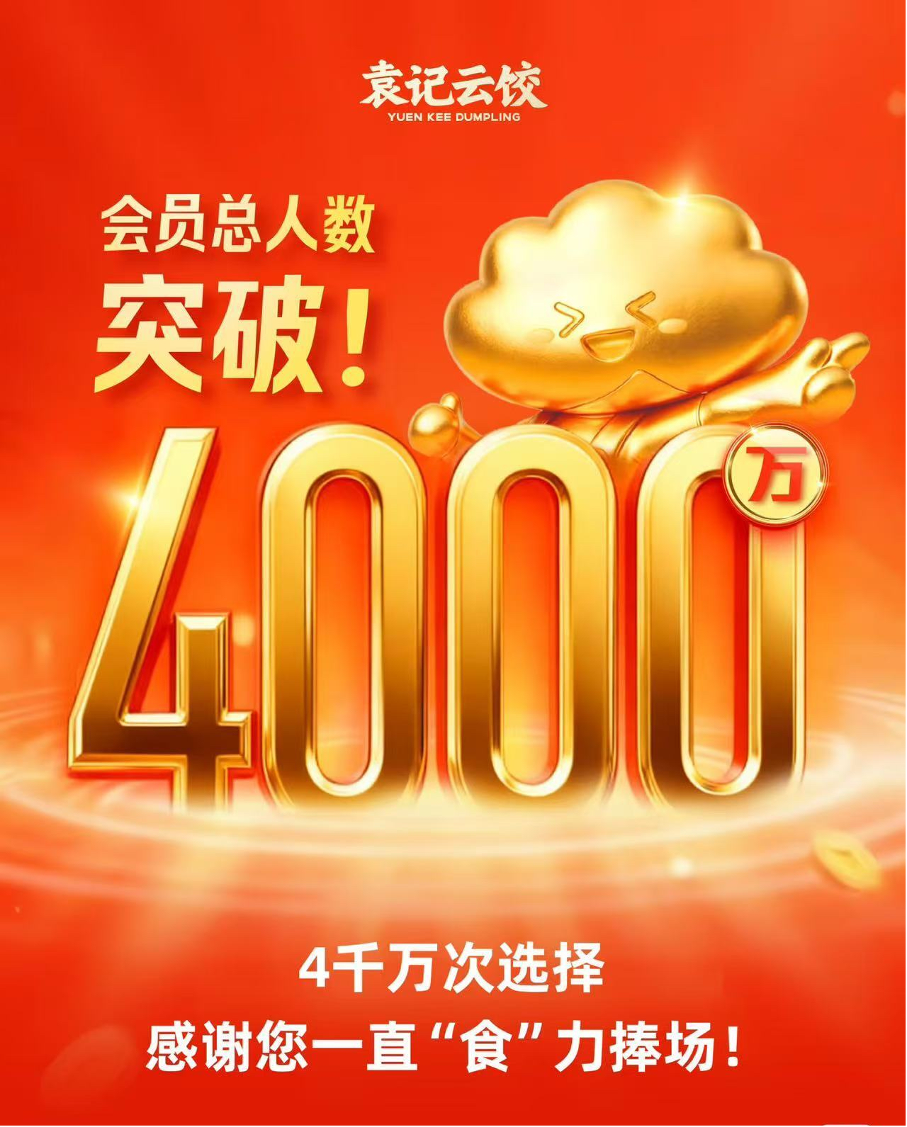 本报讯 (记者李静)近日,袁记食品集团股份有限公司(以下简称"袁记云饺")在其官网宣布,会员总数已突破4000万。据袁记云饺会员营销负责人介 绍,其会员数较半年前的3000万增长超30%。老会员年复购率接近60%,人均年消费频次接近4次,高于行业平均水平。"通过系统化的会员服务与互动,我 们与会员的关系不断深化,老会员的忠诚度与活跃度持续提升,实现了会员规模与会员黏性的同步增长。"该负责人称。 2025年,中国餐饮市场在结构性调整中进一步向"留量运营"深化。根据中国烹饪协会发布的报告,10月份餐饮市场呈现"短期回暖、后劲不足"的特征。面临 长期可持续增长的命题,餐饮品牌也逐步意识到会员体系与用户价值的深度运营的重要性。而面对这一趋势,袁记云饺的运营实践提供了某种参照。 会员总人数 E S HF ! 4千万次选择 感谢您一直"食"力捧场! (图片来源:袁记云饺官方账号) 今年6月份,袁记云饺对会员体系进行了全面升级,涵盖VIP六大核心权益,不仅提供生日礼、积分兑礼等常规优惠,更创新性推出高等级会员专属的"私享 会"。例如7月举办的亲子私享会,袁记云饺就通过食材溯源纪录片观影、明档手工包饺体验等环节,将消费关系升 ...