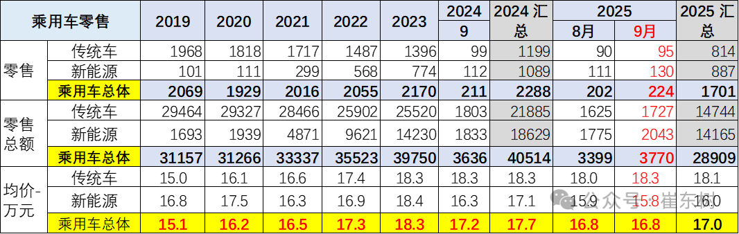 崔东树:2025年9月乘用车市场价格段跟踪