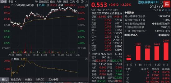 继上周五逆市企稳,今日港股AI发动反攻,科网龙头集体走强,千问刷新AI应用增长纪录,阿里巴巴- W盘中涨近6%,收涨4.67%;可灵跻身全球第一梯队,快手-W涨超7%。此外,哔哩哔哩-W涨超5%, 美团-W、腾讯控股涨超2%,小米集团-W涨逾1%。 港股AI核心资产——港股互联网ETF(513770)场内价格一度涨近3%,收涨2.2%,向上收复5日线,盘 中持续溢价,显示买盘资金积极介入。上交所数据显示,港股互联网ETF(513770)上周5日连续获资 金净流入合计7114万元。 近期市场波动率上升,港股AI相对A股AI连续走出超额表现。究其原因,港股相对A股调整得更早、跌 幅也更深,当前位置已具备性价比。华泰证券指出,港股正在进入布局区,左侧投资者可以逐步建仓。 截至11月21日,港股互联网ETF(513770)跟踪的中证港股通互联网指数市盈率仅21.93倍,位于近10年 8.3%分位点的历史底部区间;同期创业板指、纳指100市盈率分别为37.72倍、34.75倍,估值优势显 著。 | 鹰号 证券代码 | 证券简称 | 市盈率PE(TTM) | 市盈率分位数 | | | --- | --- | --- | ...