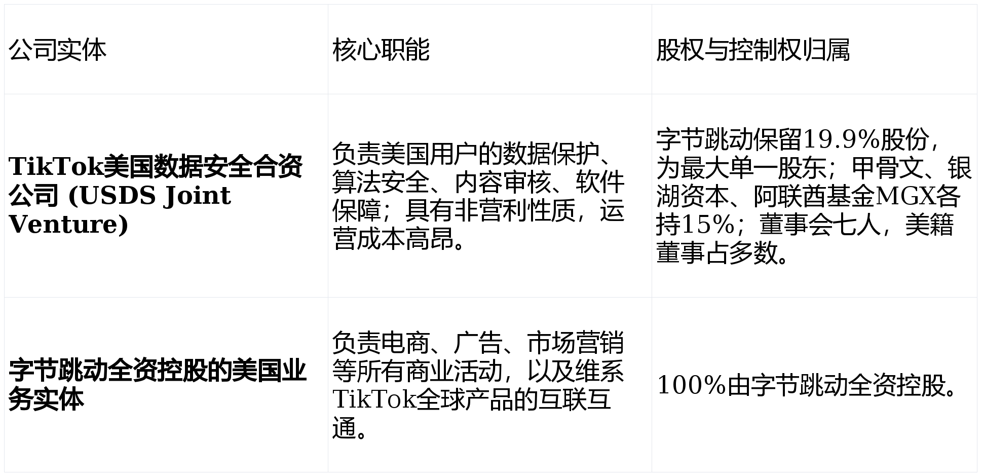 核心观点 - TikTok通过成立美国数据安全合资公司,以“双层架构、算法保留、美国托管、资本多元”的复杂设计,解决了其美国业务的生存危机,为平衡国家安全、商业利益与科技创新提供了一个充满妥协的博弈样本 [1] 核心架构:“双层公司”的精妙设计 - 方案通过设立两家功能完全区隔的公司,将TikTok美国业务彻底解剖为“安全合规”与“商业运营”两个独立模块 [2] - 该设计在不触及“强制出售”或“技术剥离”等法律与商业雷区的前提下,通过制度设计创造了一个高度透明的监管接口,以满足地缘政治和监管要求 [3] 法律与合规维度:机制创新 - 美国监管部门可以通过监督合资公司,实现对数据流和内容审核规则的“穿透式”管理 [3] - 将最敏感的数据与内容审核职能,剥离至一个由美国资本主导、受美国法律管辖、董事会以美籍成员为主的独立实体中,直接回应了美国监管机构关于数据安全的核心指控 [5] 资本与地缘维度:引入“缓冲层” - 股权结构精心引入了甲骨文、银湖资本和阿联酋主权基金MGX等多方力量,分散风险并在地缘政治上形成“缓冲层” [4] - 美国国内的反对声音将同时面对本国资本利益和重要国际盟友(阿联酋)利益的掣肘,使得未来任何试图推翻此方案的举动都将面临更复杂的成本计算 [4] 商业运营与价值保留 - 字节跳动通过全资控股另一实体,牢牢掌握了TikTok的“钱袋子”(广告、电商)和全球互联互通的“命脉”,保障了其商业价值与全球产品体验的一致性 [5] - 最关键的让步底线得以坚守——TikTok赖以成功的核心推荐算法,其知识产权仍完全归属字节跳动,仅以授权方式供美国合资公司使用,避免了技术“断根”的风险 [5] 中美立场维度:“镜像”与“对等” - 此方案被广泛称为“云上得州”方案,与苹果公司在中国采用的“云上贵州”模式形成了意味深长的镜像 [6] - 中国政府将此视为一个重要的对等原则案例,并在方案宣布前通过商务部明确表示,希望达成“符合中国法律法规、利益平衡的解决方案” [6] - 对美国而言,在实操层面获得了对数据安全和内容管控的直接监督能力,足以向国内政治交代 [6] 商业影响维度:稳定预期与资源聚焦 - 方案的落地消除了笼罩在超过2亿美国用户和数百万商家头上的最大不确定性 [7] - TikTok美国区已开始将运营资源向头部优质商家倾斜,自2026年起,其重点客户服务将主要面向年营收超1000万美元或月销超6.5万美元的店铺 [7] - 这标志着平台正从“野蛮生长”转向“精耕细作”,在获得稳定经营环境后,追求更高质量的商业化发展 [7] 未来展望与行业启示 - 短期来看,这是一个多方都能宣称胜利的“最佳妥协方案”,甚至可能成为“其他全球平台应对地缘政治审查的潜在蓝图” [8] - 长远而言,这种“夹心”模式的内在张力依然存在,算法的中西方“价值观校准”如何操作、董事会与全球商业策略的冲突协调机制是否有效,都是未来可能引发摩擦的隐患 [8] - 该案例证明在“全面脱钩”与“无条件开放”两个极端之间,存在一片需要高超政治智慧与商业技巧的中间地带,数字主权的博弈进入了一个更加精细、复杂的“机制竞争”新阶段 [9]