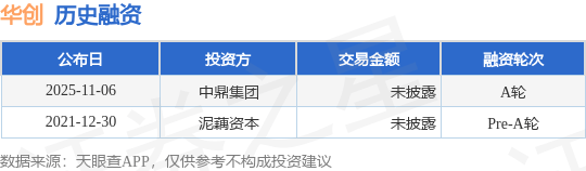 【投融资动态】华创A轮融资,投资方为中鼎集团