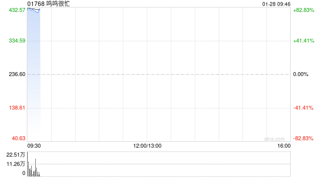 鸣鸣很忙首挂上市 盘初上涨88.08%公司为中国最大的休闲食品饮料连锁零售商