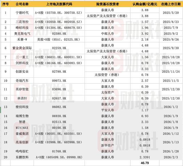 火力全开!2026开年泰康平安新华等超10亿险资南下,狂扫港股AI、生物医药IPO