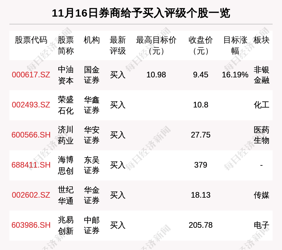 11月16日20只个股获券商关注,中油资本目标涨幅达16.19%