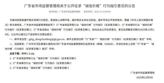 广东“诚信价格”行为指引公开征求意见
