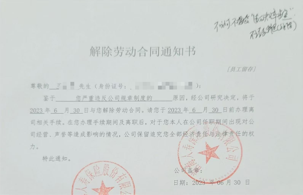 "我在职8年,各项工作都是按公司流程执行,怎么就严重违反规章制度了?"王先生在通知书上注明"不认可、不接受辞退",但公司仍执意解除劳动关系。 随后,王先生申请劳动仲裁,要求公司支付赔偿金、工资差额等共计89.8万元。前海人寿拒绝赔付,还提起反申请,称王先生存在违规报销和严重失职行 "前海人寿一直拖着拒不赔付!" 近日,王先生向"凤凰网服务台"反映(报料链接:https://finance.ifeng.com/questionnaire),三年前被前海人寿保险股份有限公司(以下简称"前海人寿")单 方面解雇后,他便踏上了漫漫维权路。 令人没想到的是,这场劳动纠纷跨越近三年仍未落幕——历经仲裁、法院一审和二审及高院再审,最终认定前海人寿违法解除劳动合同,判令其支付80余万 元补偿款。但判决生效后,前海人寿仍不履行赔付义务,这让王先生既气愤又无奈。 据王先生介绍,他在2014年入职深圳前海人寿保险股份有限公司,期间也算稳步晋升,曾历任财务管理室经理、财务总监助理等职。2022年8月,公司安排 他兼任北京项目公司总经理,还与公司签订了无固定期限劳动合同,双方约定月工资66000元,其中基本工资52800元、绩效工资1 ...