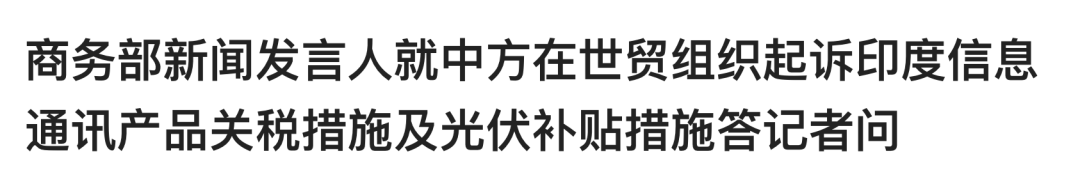 商务部新闻发言人就中方在世贸组织起诉印度信息通讯产品关税措施及光伏补贴措施答记者问