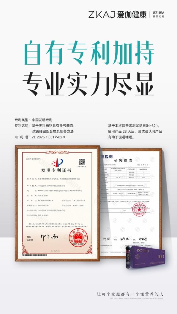 核心观点 - 爱伽健康营养中心宣布其自研的全球首个枣科植物气血与睡眠养护专项专利技术实现产业化应用 标志着天然营养健康产品研发进入技术驱动新阶段 [1] 技术与产品创新 - 公司专利技术为全球首个获得授权的枣科植物在气血与睡眠养护领域的专项专利 率先落地于核心产品“臻颜清·养” [1] - 该技术突破了传统枣科植物应用中有效成分提取率低、作用机制模糊的行业痛点 实现了“单原料多功效”的创新突破 [4] - 产品依托两项国家发明专利构建差异化竞争力 一项专利实现补气养血与改善睡眠双重功效 另一项专利通过先进提取技术最大化保留天然成分生物活性 [4] - 专利技术的应用使产品摆脱了传统助眠产品可能存在的依赖性风险 以天然温和配方填补了天然助眠运动营养食品的市场空白 [4] 产品功效与安全验证 - 第三方权威检测机构华测检测出具的28天人体试用报告为产品功效提供了科学数据佐证 [1] - 试验选取32名30-59岁睡眠障碍受试者 其中71.88%为上班族 数据显示连续28天饮用后核心睡眠指标与使用前相比均呈现极显著性差异 [5] - 具体改善数据包括:做噩梦情况减少72.22% 入睡困难问题改善50% 日间精力不足、困倦等状态优化超60% [5] - 产品在“有助于促进睡眠”等关键维度认同度均达96.88% 全程无任何不良反应发生 验证了产品的科学性、有效性与安全性 [5] 产品设计与市场定位 - 产品采用口服饮品形态 可直接饮用或稀释后饮用 操作便捷 每天仅需饮用1次即可满足日常助眠需求 [9] - 产品设计适配多元生活场景 如上班族睡前放松、中老年人群改善睡眠质量等 旨在实现“随时随地,轻松助眠” [9] - 在消费升级与健康意识提升驱动下 产品凭借专利技术创新性、天然原料安全性及权威数据可信度 有望在气血睡眠养护细分市场形成差异化竞争优势 [9] - 该专利技术的落地提升了品牌专业形象 推动了枣科植物在功能性食品领域的高值化应用 为行业提供了“传统智慧+现代科技”的研发范本 [10] 商业化与未来展望 - “臻颜清·养”产品已通过企业官网及线下合作渠道正式发售 [10] - 公司表示未来将持续加大研发投入 围绕枣科植物等天然原料开发更多精准营养产品 以技术创新助力“健康中国2030”战略实施 [10]