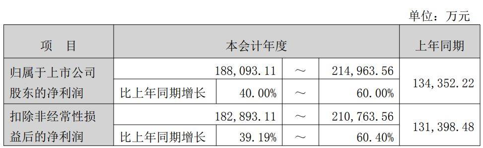 2025年度业绩预告核心数据 - 公司预计2025年实现归属于上市公司股东的净利润约18.81亿元至21.5亿元,同比增长40.00%至60.00%,上年同期为13.44亿元 [1] - 公司预计2025年实现扣除非经常性损益后的净利润约18.29亿元至21.08亿元,同比增长39.19%至60.40%,上年同期为13.14亿元 [1][2] 业绩增长驱动因素 - 业绩增长主要得益于人工智能行业加速发展与全球数据中心建设,带动了高速光器件产品需求的持续稳定增长 [4] - 公司智能制造持续降本增效,共同促进了有源和无源产品线营收增长 [4] - 报告期内受汇兑损失影响,财务费用同比上升,对业绩增长产生一定负向影响 [4] 业绩与市场预期对比 - 根据21家机构的一致预测,公司2025年归母净利润的一致预测值为21.6665亿元 [3] - 公司业绩预告的净利润区间上限为21.5亿元,较机构一致预测值低约0.78% [4] - 机构预测的归母净利润最小值为19.38亿元,最大值为23.51亿元 [5] 分季度业绩测算 - 公司2025年前三季度实现归母净利润约14.65亿元 [4] - 据此计算,公司2025年第四季度净利润预计在4.16亿元至6.85亿元之间 [4] 历史及预测财务表现 - 公司营业收入从2022年的11.96亿元增长至2024年的32.52亿元,预计2025年将达到56.01亿元,同比增长72.25% [5] - 归母净利润从2022年的4.03亿元增长至2024年的13.44亿元,机构一致预测2025年为21.67亿元,同比增长61.27% [5] - 公司预计2025年每股收益为2.79元,净资产收益率达到38.75% [5] 公司业务与市场地位 - 公司是业界领先的光器件整体解决方案提供商和光电先进封装制造服务商 [6] - 产品广泛应用于人工智能、数据中心、光纤通信、光学传感等领域 [6] 股价表现与市场动态 - 2025年全年,公司A股股价累计上涨213.72% [7] - 股价上涨驱动因素包括AI算力驱动的光器件需求爆发、1.6T光引擎与CPO技术落地、业绩高增、头部客户绑定及全球化产能释放 [7] - 进入2026年至1月21日收盘,公司在13个交易日内股价累计下跌7.04% [9] 公司战略举措 - 公司于2025年12月中旬公告,拟发行H股并在香港联合交易所二次上市 [9] - 此举旨在持续推进公司国际化战略和全球化布局,打造国际化资本运作平台 [9] - 该H股上市计划尚需提交公司董事会和股东大会审议,并需取得中国证监会等机构的批准,最终能否实施具有较大不确定性 [11]