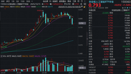 市场行情表现 - A股市场冲高回落,成交额跌破2万亿元,市场避险情绪升温,科技成长板块偏弱[1] - 创业板人工智能板块独立收红,算力领域表现活跃,首都在线领涨超5%,光模块CPO概念股走强,中际旭创上涨3.63%收复五日线,新易盛、天孚通信均收红[1] - 创业板人工智能ETF(159363)场内收涨0.25%,实现日线两连涨,全天成交5.84亿元[1] 光模块与算力链前景 - 近两日光模块为核心的算力链止跌反弹,回暖信号明确,后市重点关注业绩催化[3] - 华泰证券指出,第三季度海外800G光模块需求预计延续快速增长,中际旭创、新易盛等头部厂商业绩有望延续同比高增[3] - 随着1.6T光模块有望进一步起量,看好相关光模块、光引擎等环节厂商,预计2025年第三季度光通信板块归母净利润同比增长167%[3] 数据中心与AI资本开支 - 华泰证券表示,2025年以来国内AI数据中心建设起量,规模效应下费用率有望优化,部分公司业绩有望陆续兑现[3] - 阿里在云栖大会上表示其2032年数据中心能耗将增长10倍,头部互联网厂商对AI领域的积极资本开支投入有望为头部数据中心厂商带来良好订单和EBITDA增长[3] - 台积电第三季度财务报告营收、净利润均超预期,提振市场对AI芯片需求激增的乐观预期,公司表示AI需求持续强劲,比3个月前预期更强劲[4] 行业观点与投资机会 - 中信建投认为,从应用到硬件均持续验证AI算力需求强劲,算力资本开支具备持续性,AI算力是板块性行情,产业链个股普遍有机会,市值仍有空间[4] - 虽然近期算力板块波动较大,但调整即是介入机会,持续推荐AI产业链[4] - 创业板人工智能ETF(159363)作为全市场首只跟踪创业板人工智能指数的ETF,截至2025年9月30日,逾七成仓位布局算力,超两成仓位布局AI应用,光模块龙头含量超51%[4] - 截至10月15日,该ETF最新规模超36亿元,近1个月日均成交额超10亿元,其规模与交投在跟踪同一指数的7只ETF中均排名第一[4]