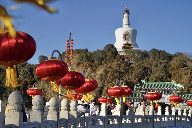 北海公园春节景观布置完毕,夜景景观照明调试接近尾声