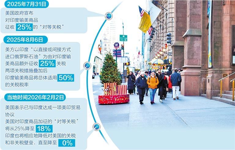 美印贸易协议核心内容 - 美国与印度已达成一项贸易协议 美国对印度商品加征的“对等关税”将从25%降至18% 印度也将相应降低对美国的关税和非关税壁垒直至降至零 [3] - 印度承诺将大幅增加对美国产品的采购 包括价值超过5000亿美元的美国能源、技术、农产品、煤炭以及其他产品 [3] 谈判背景与过程 - 美印贸易谈判自2025年以来始终笼罩在美方关税威胁的阴影之下 美方以“进一步提高关税”威胁印度断绝进口俄罗斯石油 并要求印度开放农产品及数字市场 触及印方传统敏感领域 [4] - 2025年7月31日 美国政府宣布对印度输美商品征收25%的“对等关税” 并于8月7日生效 8月6日 特朗普以印度进口俄罗斯石油为由 对印度输美商品额外征收25%关税 两项叠加后印度输美商品总体适用50%关税税率 [5] - 美国财政部长贝森特近期暗示 因印度“大幅减少俄罗斯石油进口” 美方正考虑对印度商品减征25%惩罚性关税 此举被视为美方立场软化的信号 [4] 对印度经济与产业的影响 - 美国加征的关税对印度劳动密集型产业造成巨大冲击 这些行业吸纳了大量就业 仅纺织业就涉及600万至700万个就业岗位 [5] - 关税导致印度出口商错失2025年圣诞旺季订单 损失惨重 [5] - 为规避关税 印度珠宝商被迫在美国设立子公司 部分企业将产能转移至阿联酋等低税率国家 服装商则探索向非洲转移生产线 [6] 印度的应对策略与筹码 - 印度政府坚持展现强硬谈判姿态 印度商业和工业部长戈亚尔曾声明印度“不会仓促达成协议 也不接受胁迫性条款” [6] - 印度在外交上另辟蹊径 与欧洲保持紧密联系 近期与欧盟签署了自由贸易协定 旨在通过大幅降低关税减少对美贸易依赖 [6] 双方达成协议的驱动因素 - 对美而言 谈判已超越两国范畴且“拖不起” 特朗普面临中期选举压力 美欧因格陵兰岛问题产生的关税摩擦意外促成印欧形成“抗美关税同盟” 令美感到“腹背受敌” 主动谋求协议签署成为最优解 [6] - 对印而言 政府需要在2026年大选前兑现经济承诺 莫迪须尽快与美达成较为满意的协议以将民意支持转化为选票 [7]